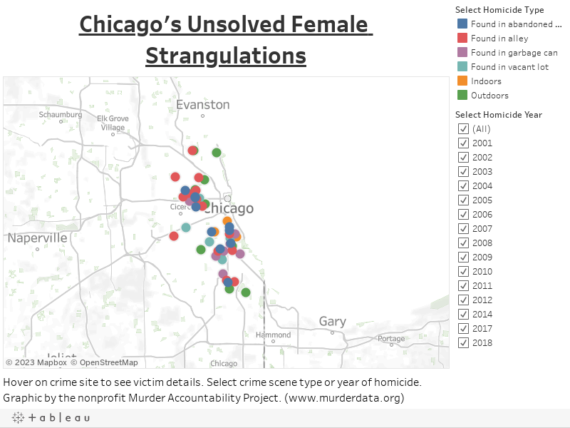 Thomas Hargrove, a retired investigative journalist, felt something was suspicious as he analyzed Chicago homicide data in late 2014. He identified several eerie patterns among a cluster of fifty-one unsolved female homicides: most of the victims had been sex workers or drug users, ninety-three percent of the murders occurred outdoors or in abandoned buildings, the murders were concentrated on the city’s South and West Sides, and in every single case, the cause of death was asphyxiation or strangulation.